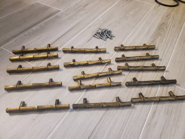 Bamboo Styled (metal) Cabinet & Drawer Pulls Handles 3 inch Center to Center Set of 15 REDUCED!!! $25 Due to the number of scam callers I am now only respnding to TEXT MESSAGES. Thank you for...