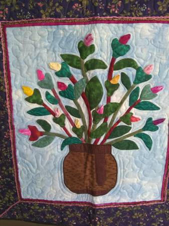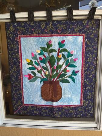 Beautifully hand-sewn tapestry. Deep Blue background border/edge. Flower tops are "3-D" which makes them look "Alive". Measures 28 x 30 inches. Loops on top for easy hanging. Artist was originally from Ohio. Cash and Pickup Only. Lake Mary. I-4 and Lake Mary Blvd