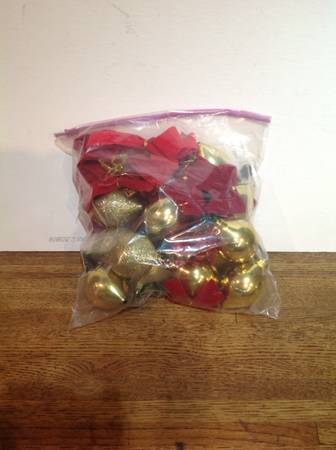red and gold plastic ornaments 17 total, some glitter some polished gold, $4.25