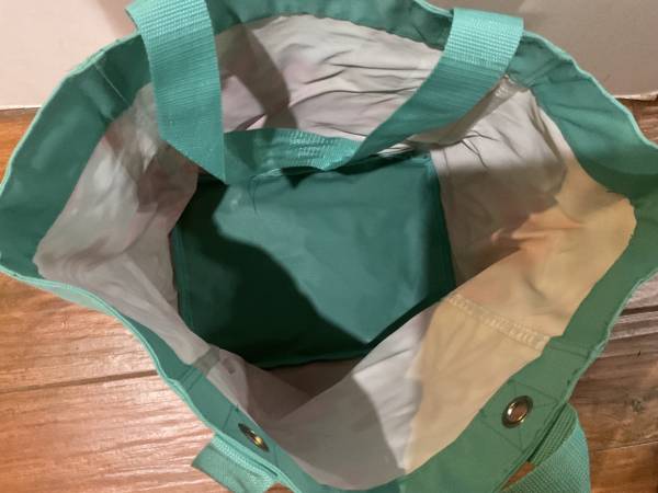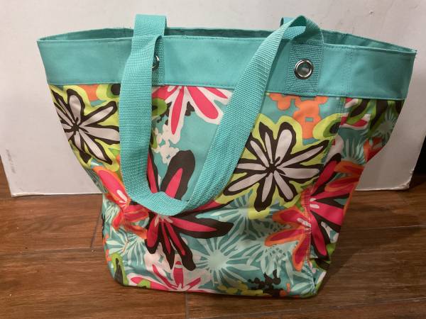 aqua with floral pattern tote bag by thirty one, handles to carry, 12” x 8.5” x 13”, new