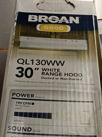 New in box Model # QL130WW 190 CFM airflow at high speed, 100 CFM at low speed provides options to clear smoke and odors 6.0 sones at high speed, 2.0 sones at low speed to minimize the noise level