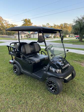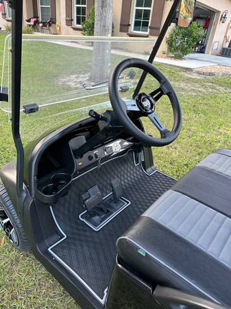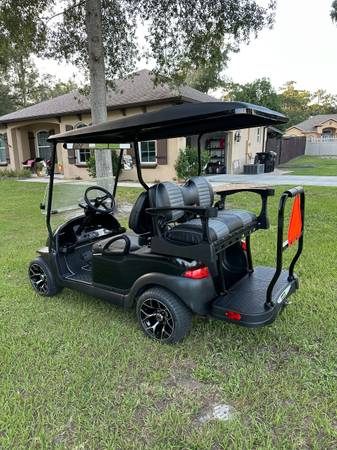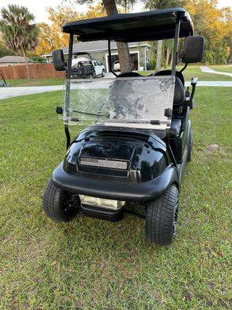 48 volt Club Car Precedent, completely street legal with title. Has headlights, tail lights, brake lights,hazards, blinkers, horn, windshield wiper, license plate mount with light, side mirrors, 5 panel rear view mirror, seat belts front and rear with slow moving vehicle sign. 1 year old Trojan batteries, state of charge meter, extended roof, MadJax Genesis 300 rear seat kit (aluminum upgrade $750) has brand new wheels and tires, brand new stapled on seat covers, brand new Xtreme Mats floor mat, brand new seat belts. $4400 obo