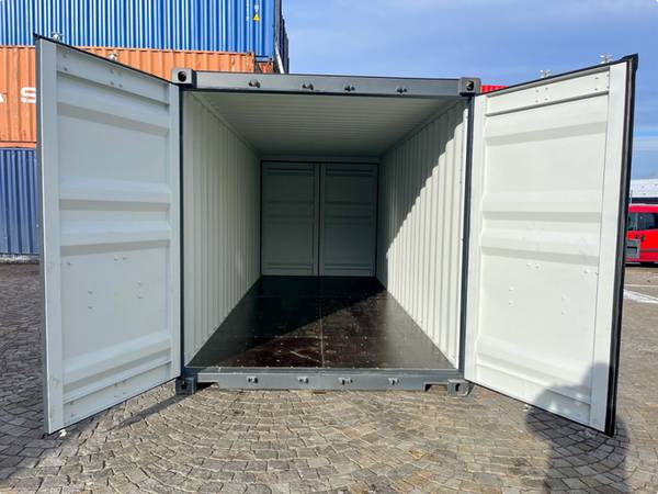 High-quality 20' steel shipping container with double doors on both ends, perfect for convenient loading, unloading, and flexible access. This unit is in One Way condition—used only once for shipping and still like new.