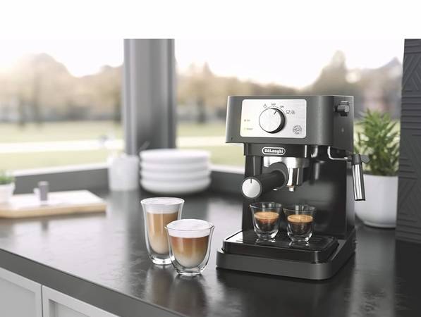 De'Longhi Stilosa Manual Espresso Machine, Latte & Cappuccino Maker, 15 Bar Pump Pressure + Milk Frother Steam Wand, Black / Stainless, EC260BK New in the original package.