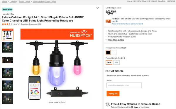 Hampton Bay 24 ft. SMART Edison Bulb Color Changing LED String...