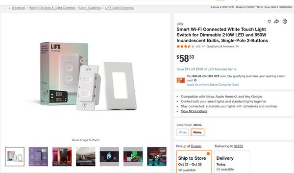 With just a simple phrase, LIFX smart switch can control all of your lights to activate scenes, themes, schedules and more, simply use your voice to turn your lights on or off, switch to vibrant party colors or dim all of the right lights at once for the perfect movie night