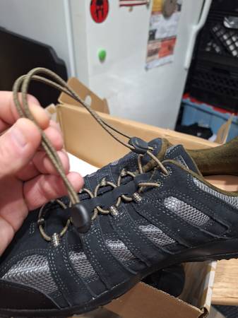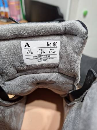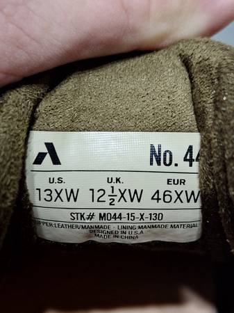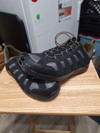 I have two pair of size 13 wide shoes one pair or sneakers the other pair or work boots they are feather light most likely the lightest Boot and shoe you will ever wear I am only asking $115 or best offer for each they even have extra thick Soul inserts for comfort pictures will show everything no time zipper boots and zip rope sneakers these have never been worn brand new in the box only took out to take pictures