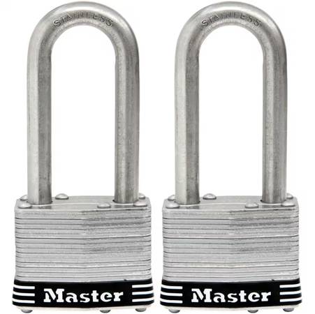 BRAND NEW IN PACKAGING Master Lock Stainless Steel Outdoor Padlocks with Key, 1-3/4 in. Wide, 2 in. Shackle, 2 Pack