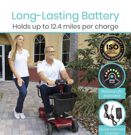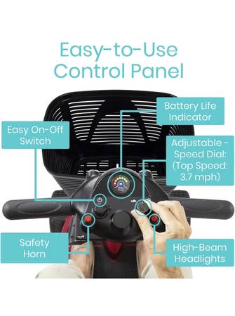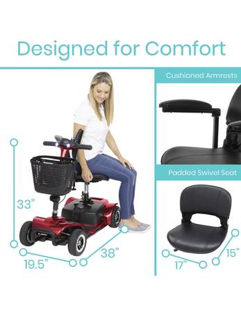 Slightly used, Vive 4 Wheel Mobility Scooter - Electric Powered Wheelchair Device - Compact Heavy Duty Mobile for Travel, Adults, Elderly - Long Range Power Extended Battery with Charger & Basket