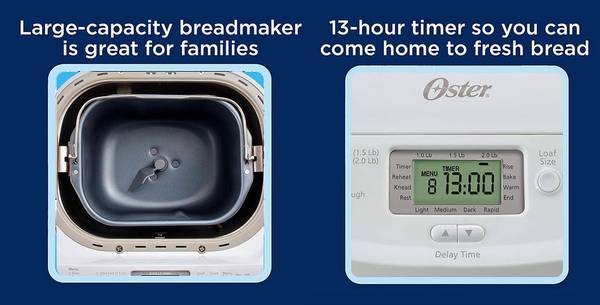 * 13-hour programmable baking timer for fresh bread anytime