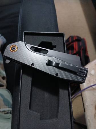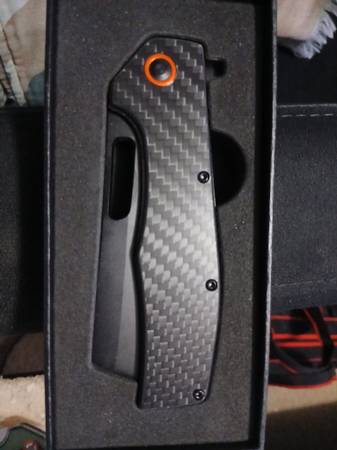 FOR SALE THIS POCKET KNIVE WITH WITH CARBON FIBER HANDLE AND CERAMIC BALL BEARING VERY SHARP. STAINLESS STEEL SPRING OPEN BLADE.