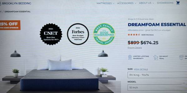 This is a high quality mattress made in USA by Brooklyn Bedding (Shows a similar model in one of the pictures). Great for home or camper. Bought it for RV and kept it in storage, it has not been used. King Size 70x74 with 10" Hight. Price reduced for quick sale!