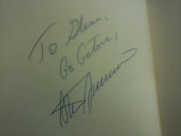 book, "GATORS THE INSIDE STORY OF FLORIDA'S FIRST SEC TITLE" personally autographed by Steve Spurrier 1992 autographed "To Glenn, Go Gators! Steve Spurrier" 207 pages