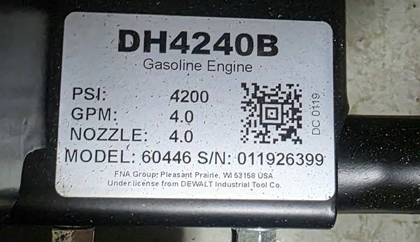 Top of the line Honda GX390 OHV commercial series engine with oil alert, easy starting, light weight and quiet, yet powerful - engine oil is included downstream detergent injection system for convenient use of cleaners Dual belt-drive system for longer pump and engine life 3/8 in. x 50 ft. high pressure steel-braided hose is non-marring, kink and abrasion resistant and equipped with quick connectors Pro-style spray wand with 5 quick connect nozzle tips- 0, 15, 25, 40 and soap applicator nozzle Professional spray gun designed to be comfortable and easy to operate - safety lock-out to prevent gun from being accidentally activated Welded steel frame, steel engine plate, solid steel axle and 13 in. pneumatic tires for extreme durability and effortless maneuverability convenient on-board accessory storage for spray gun/wand, high pressure hose and nozzles. This pressure washer is better than new as it's broken in.