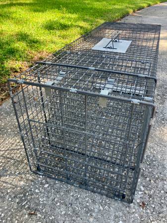 I’m selling a barely used Havahart X-Large 1-door animal trap. It’s a live trap with a spring-loaded door made out of galvanized steel and wire mesh. It’s large enough to comfortably trap common mammalian pests like raccoons, armadillos, opposums, cats, foxes, etc., without harming them. We bought it several years ago to catch a pesky raccoon and it’s been sitting in the attic ever since.