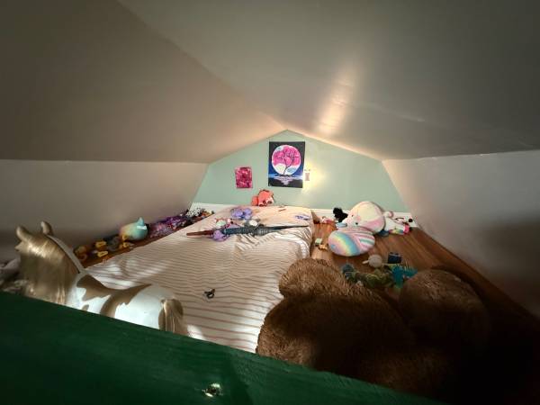 This is a 10x12 cabin/shed that has been used as a tiny living space for a single mom. Two lofts, one with ladder. Lofts are 6ft and 8ft. Fully insulated and electrical done. Small things still need to be added, like some trim and painting. Comes with a small fridge. This was bare bones when purchased so a lot of work was put into it. Need gone asap, price is negotiable. This is not on wheels, it’s on wooden slats. You have to move it. Cash in hand only. Cross posted. Send me your best offer. Very motivated to sell.