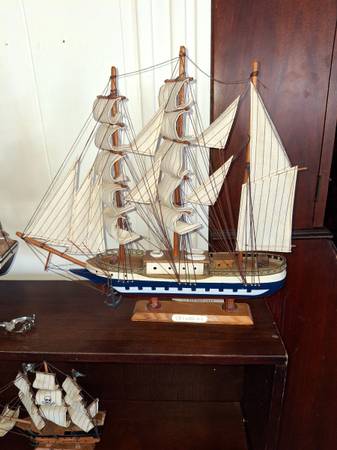Large five masted schooner with red hull is$30. All others are $20 each. Except for the two small ones, which are $10 apiece. Entire package will go for$100. See pictures and call or text. Please no...