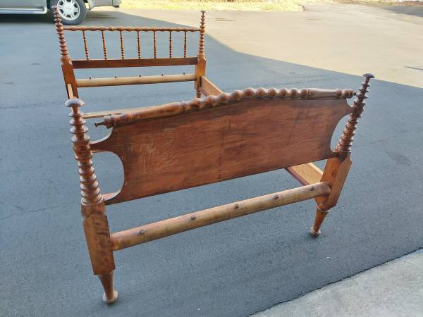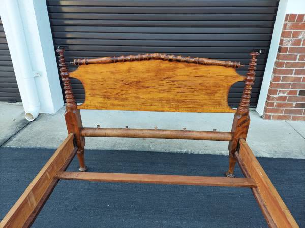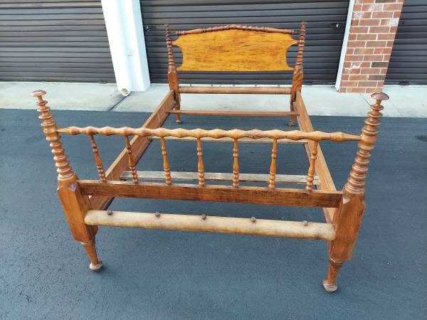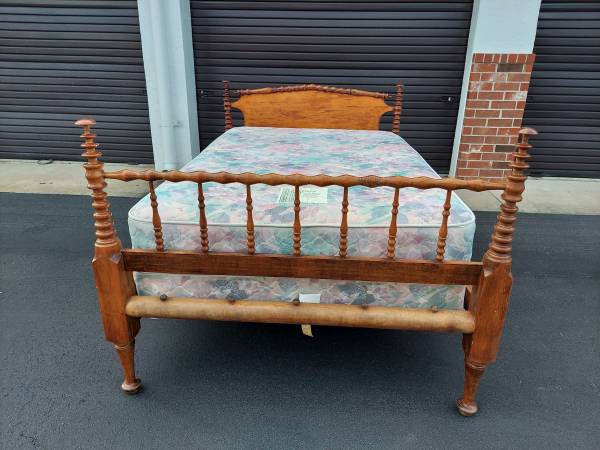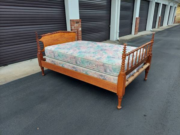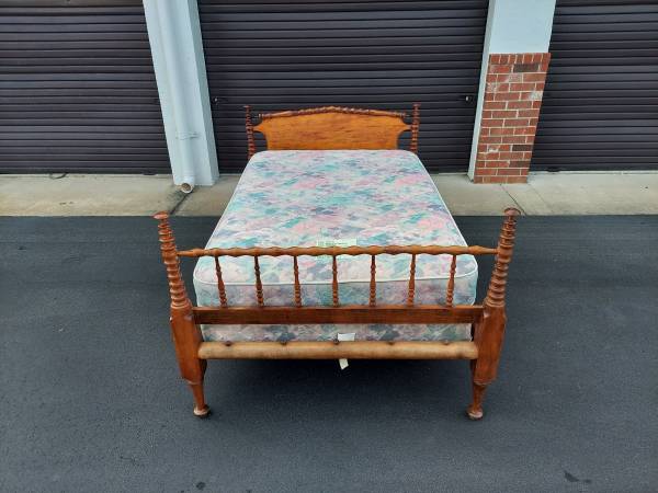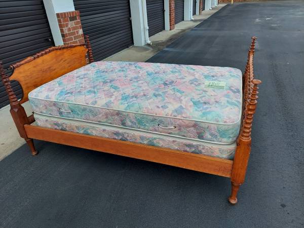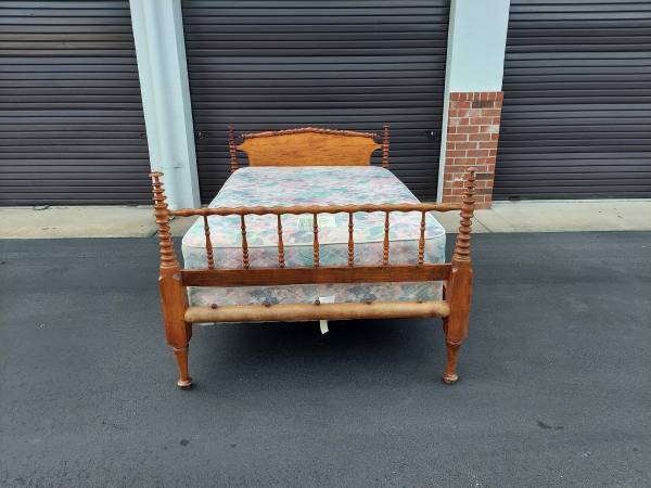 Antique Bobbin Rope Bed Not Quite Full Size - Custom Made Box Springs and Mattress - Very Nice Vintage Antique Condition - Beautiful Turnings - Original Made For Rope to Hold Old Style Feather Mattress - From Non Smoking Home. Measures 53 1/4" Wide x 83" Long and 40 1/4" Tall. Price $200.00. Cash Only. For More Info Call 386 eight four eight six two two 4 or Texts.