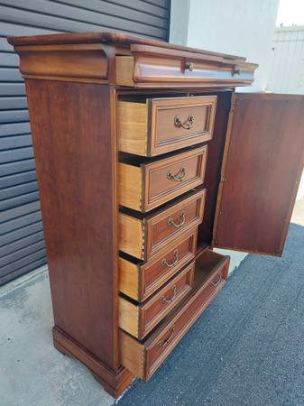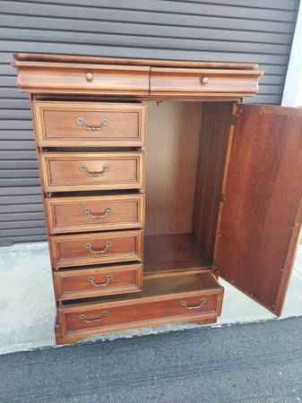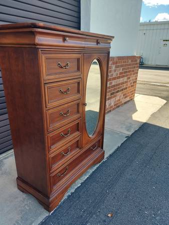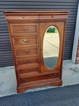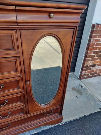 Lexington Chez Michelle Cherry Wardrobe Chiffonier By Lexington Furniture. Dated 11-6-89. Made in USA - 8 Drawer Plus Storage Behind - Lovely Beveled Oval Mirror - Nice Gently Used Condition. Measures 40" Wide x 19" Depth and 59 1/4" Tall. Price $375.00. Cash Only. For More Info Call 386 eight four eight six two two 4 or Texts.