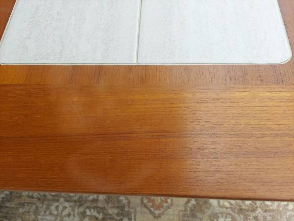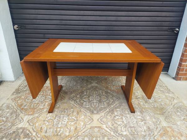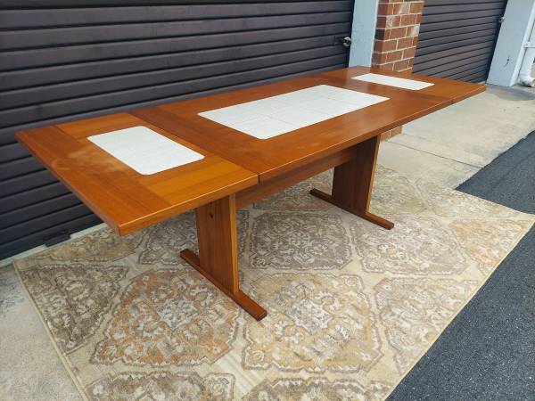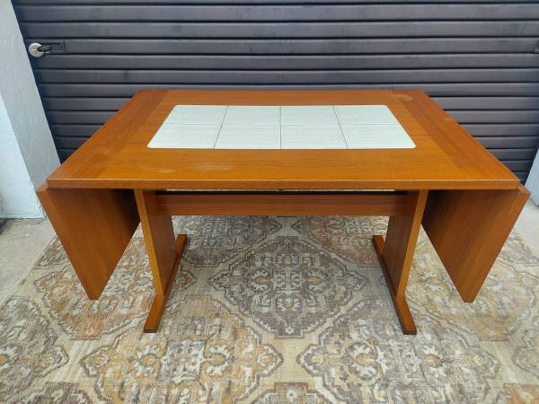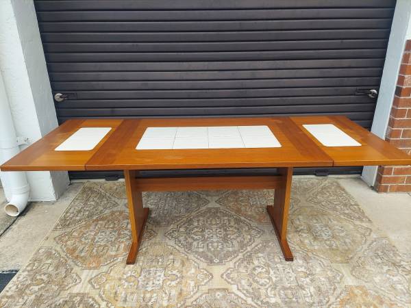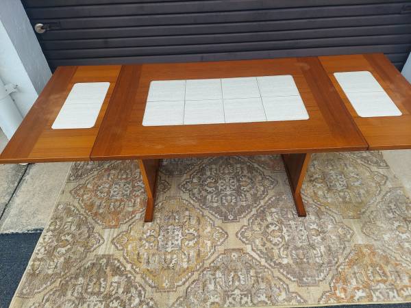 Mid Century Danish Teak Toled Extendable Dining Table From Made in Denmark Gangso Mobler - Very Good Original Condition - Very Good Vintage Condition - May Have Some Minor Imperfections Due to Age and Use. Measures 79 " Long with Leaves Extended 47 1/2" with Leaves Removed, 50 1/2" with Leaves Hanging . Leaves Each 15 3/4" Wide and 28 3/4" Tall. Price $995.00. Cash Only. For More Info Call 386 eight four eight six two two 4 or Texts.