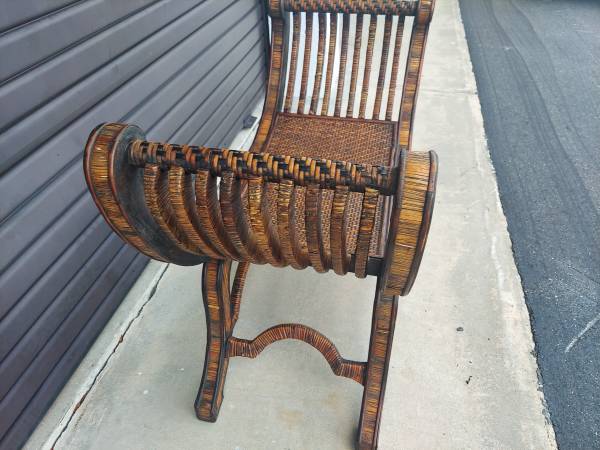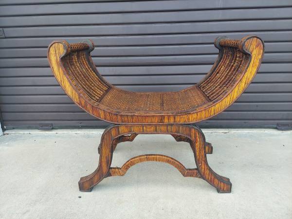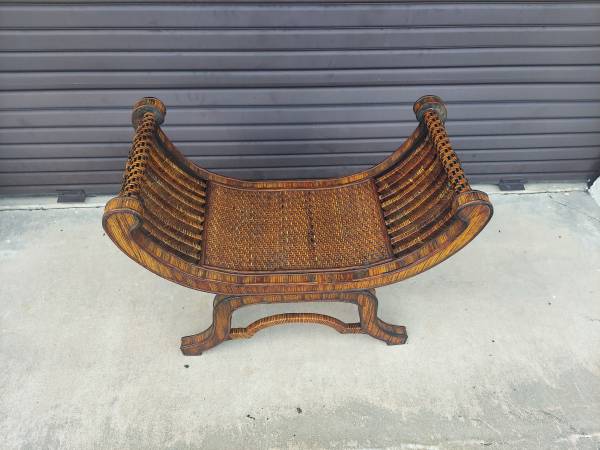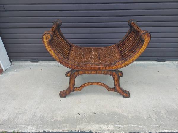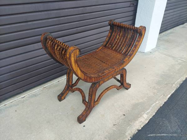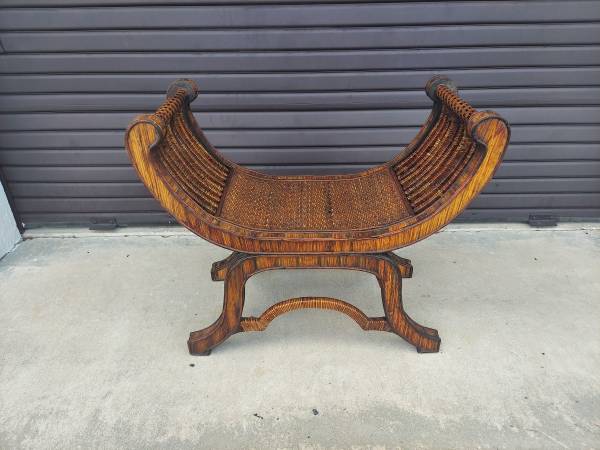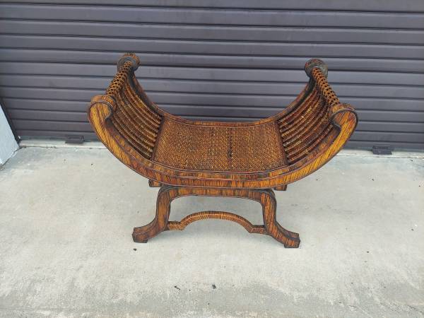 Regency Gondola Stool / Savonarola Roman Style Rattan Chair - Wood Frame - Covered in Wicker - Lovely Statement Piece For Your Decor - Very Nice Gently Used Condition - From Non Smoking Home. Measures 36 1/4" Wide x 16 1/2" Depth and 30" Tall. Seat 17" Tall. Price $120.00. Cash Only. For More Info Call 386 eight four eight six two two 4 or Texts.