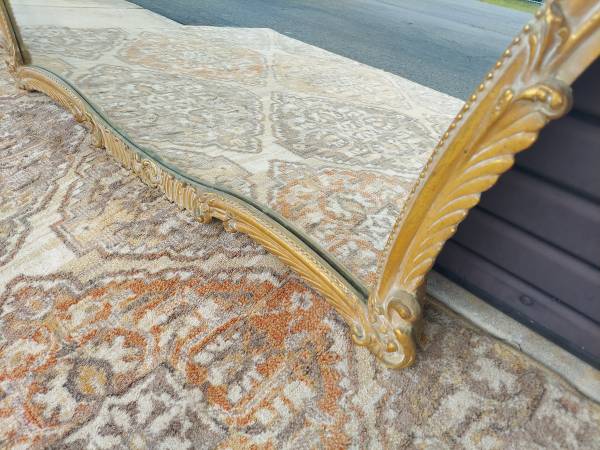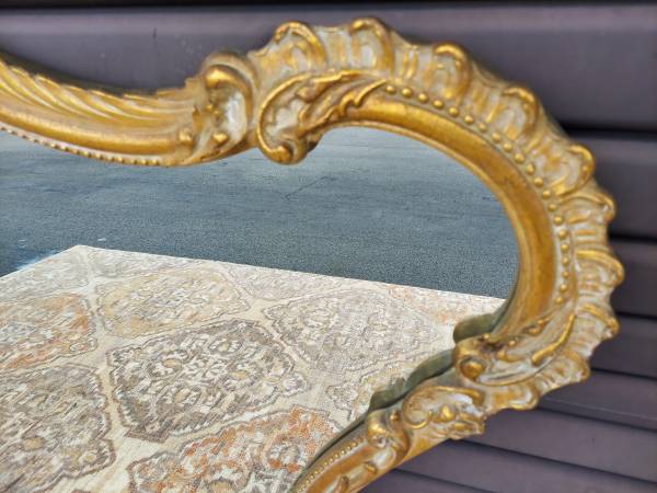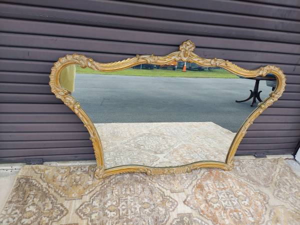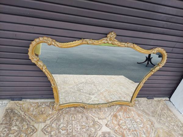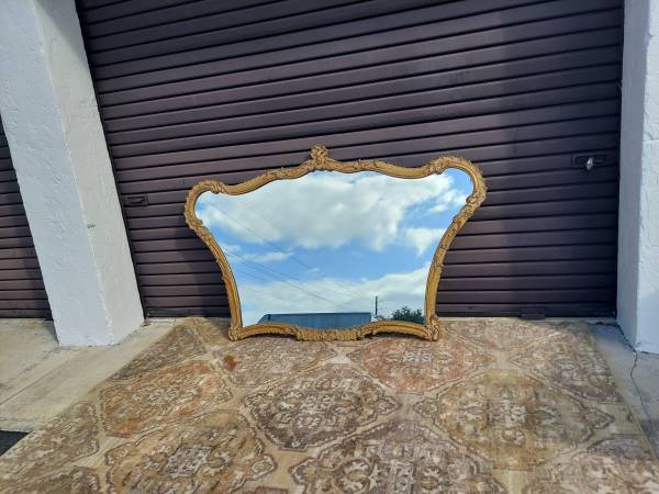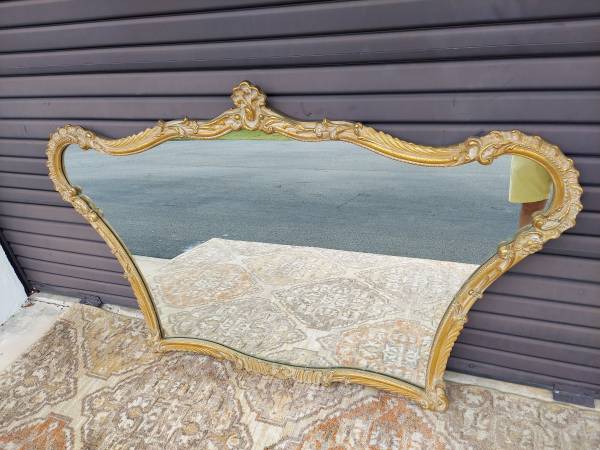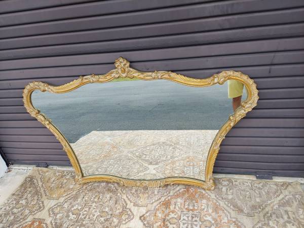 Vintage French Baroque Style Mirror - Beautiful Wood Frame - Lots of Intricate Carving - Original Gold Finish - In As Found Condition - Gorgeous Addition to Any Room. Measures Large Size 66 1/2" Wide x 42" Tall 1 1/2" Thick. Price $1,000.00. Cash Only. For More Info Call 386 eight four eight six two two 4 or Texts.