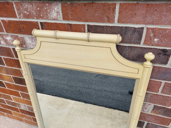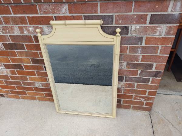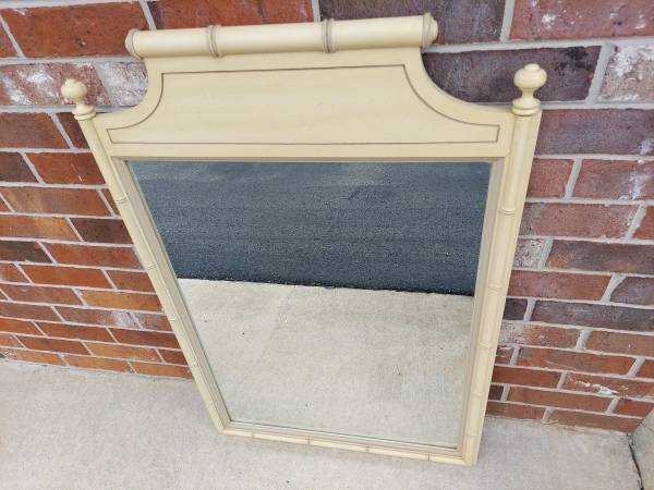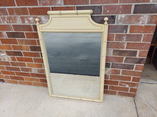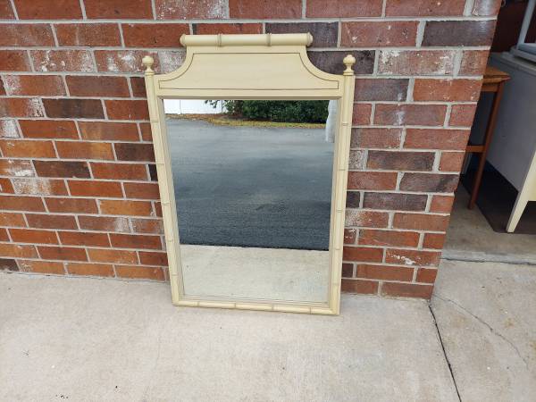 Vintage Henry Link Bali Hali Faux Bamboo Mirror - Very Good Original Condition - Antique White Color. Measures 25" Wide x 38" Tall. Price $275.00. Cash Only. For More Info Call 386 eight four eight six two two 4 or Texts.