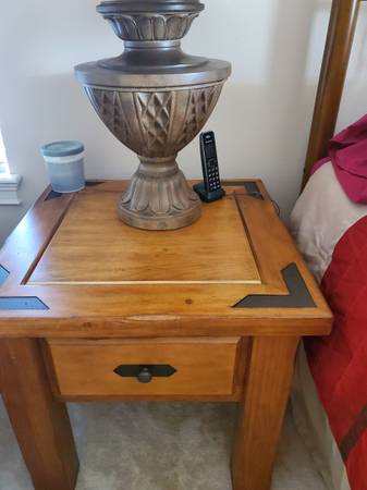 BEDROOM SET KING SIZE INCLUDES HEADBOARD & FRAME LIKE NEW MATTRESS & BOX SPRING PLUS 2 MATCHING END TABLES MUST SELL QUICK MOVING SOON PLEASE MAKE OFFER