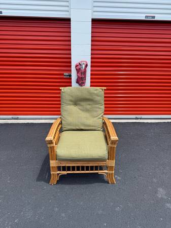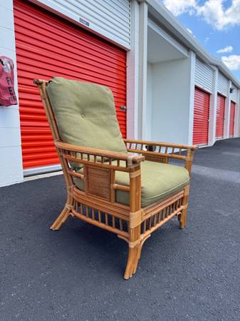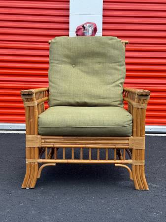 Beautiful rattan arm chair in good condition. It measures 31in x 31in x 40in with the seat being 17in from the floor. The chair has removable and washable upper and lower cushions. I have many available as well as other matching rattan furniture. Check other listings and ask for more details.