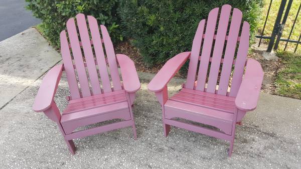 Pair of wood Adirondack chairs in good overall condition. $200- the pair.