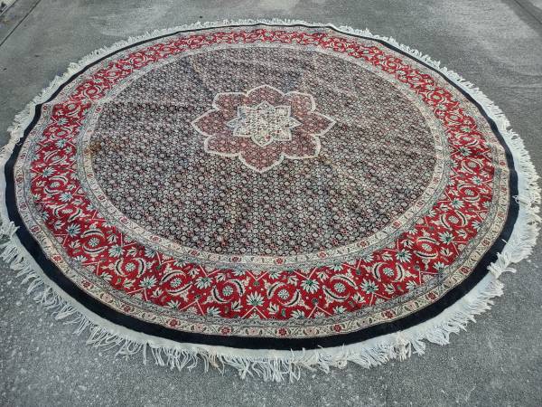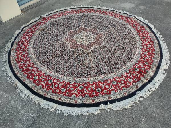For sale is a hand Knotted Round Red Carpet hand Knotted Wool Rug 8ft X 8ft. Good cosmetic condition. $ 400 cash local Serious buyer please. Call or text. No emails.
