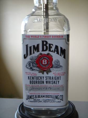 Lamp made from an actual Jim Beam Bourbon Whiskey bottle.