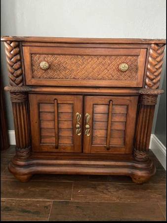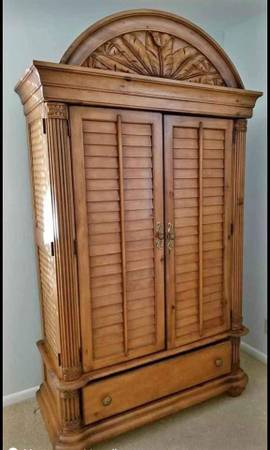Palm Court collection. Available in king or queen size. Includes bedframe, dresser with mirror, 2 nightstands. and armoire. Tall chest also available for an additional $700. In excellent condition.