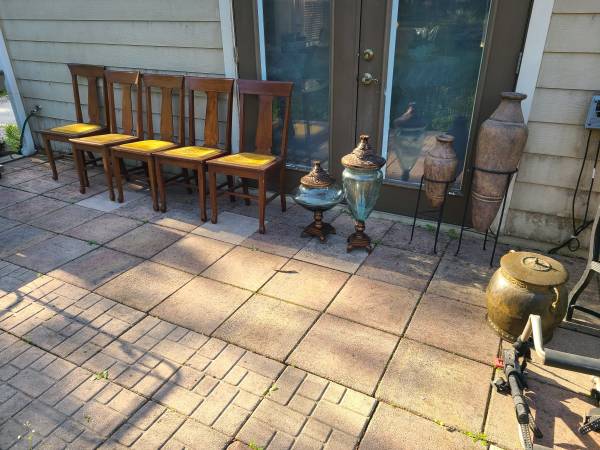 also have nice smaller rocker for $65, a wingback chair and a drafting table. Solid antique Large Rocking horse. Vases and stands. School desk. Oil lamps, Breadbox, Radio flyer wagons, drawing table is real wood solid no particleboard. Tiffany style touch lamp, Solid handmade cornhole game with locking features. Antique washboards with milkglass, carved birds, lockboxes, etc.