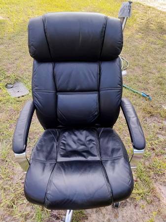 Selling a black faux-leather executive office chair in great condition. It’s well-padded, comfortable, and perfect for long hours at a desk. Features include: