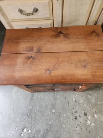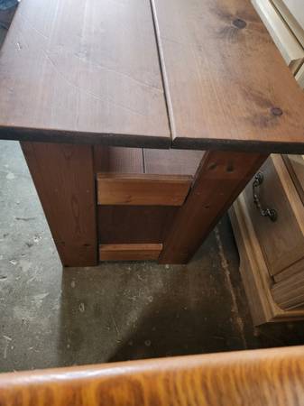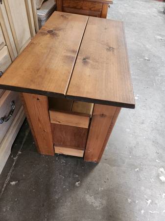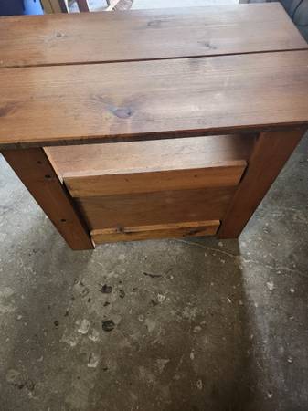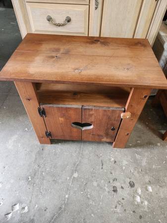 Country rustic table with a door for additional storage. Heavy and sturdy. Measures 30"W x 18"D x 25"H. Cash sale. Pick up at warehouse in Tavares. I respond by email.