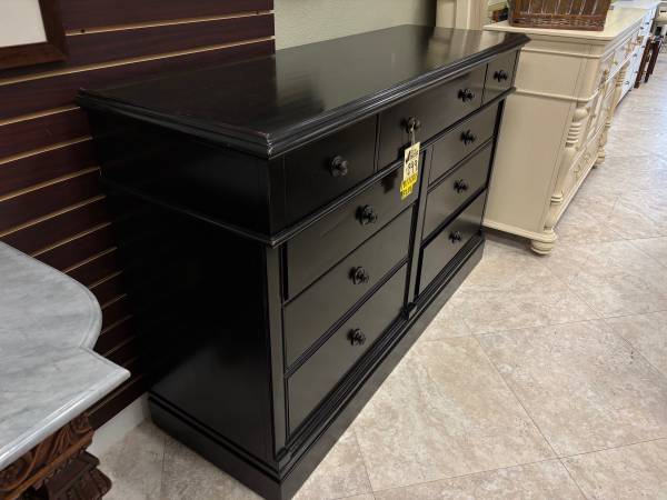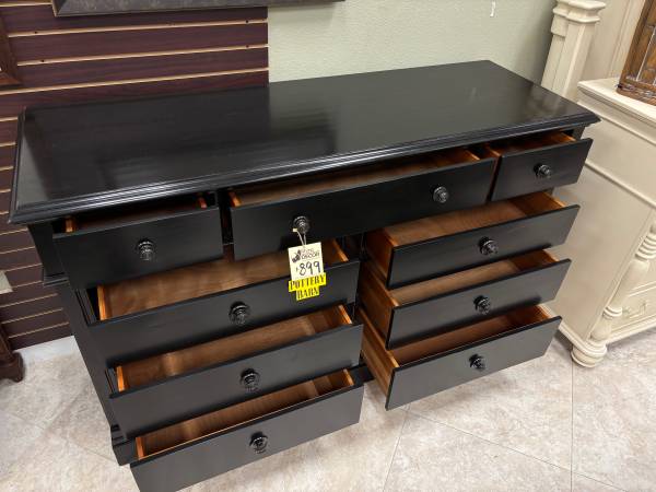 Black Pottery Barn 9 Drawer Dresser Excellent Condition Solid Wood, Dovetail Drawers Made by Pottery Barn Dimensions are 66” x 22” x 42.5”H $699