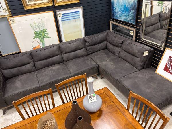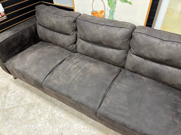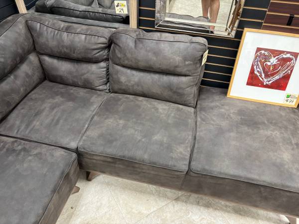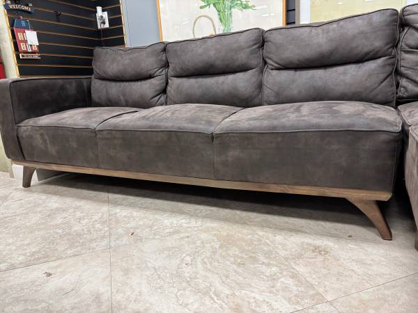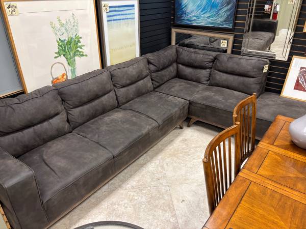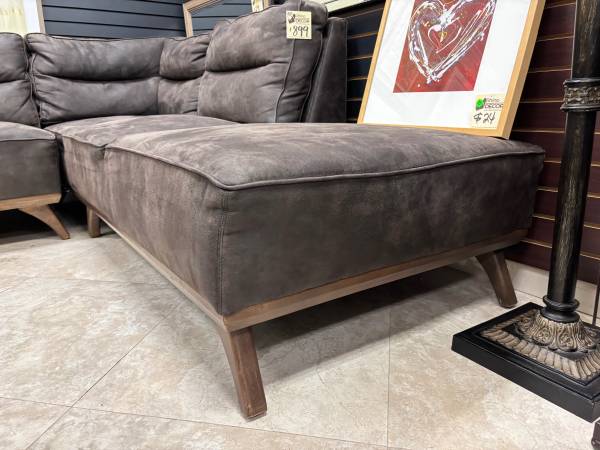 Dark Brown Microsuede 2pc Sectional Good Condition Modern Wood Frame and Style Dark Brown Microsuede Dimensions are 124” x 96” x 34”H $449