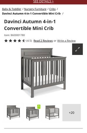 Like new mini crib https://www.ashleyfurniture.com/p/davinci_autumn_4-in-1_convertible_mini_crib_in_slate/B600001780.html Mattress...