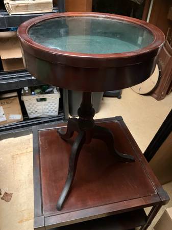Round tables pair $40. Glass top table $25 square pair $50 sold odd tables $10