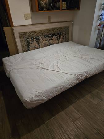 Ikea metal frame with a 5" thick foam mattress. Has a gray sip off material fabric over the foam mattress as seen in my pictures. I put a plastic sip off mattress cover on & goes with the futon. The measurements are 79" by 56" .