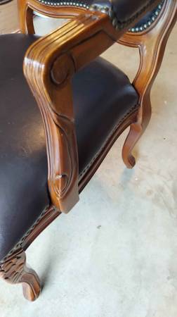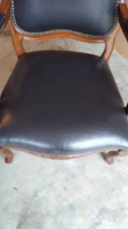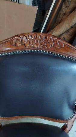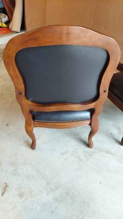 One black leather armchair, very sturdy & great looking. It is used but look new with a few marks as shown in the pictures. They are 39 1/2" tall - arm height is 26" - seat is 23" by 23". local...