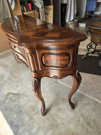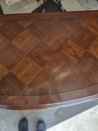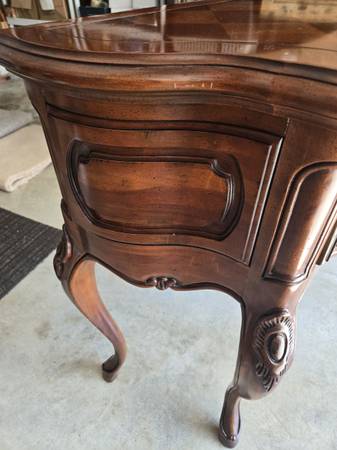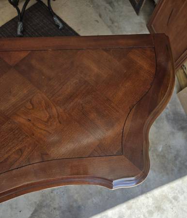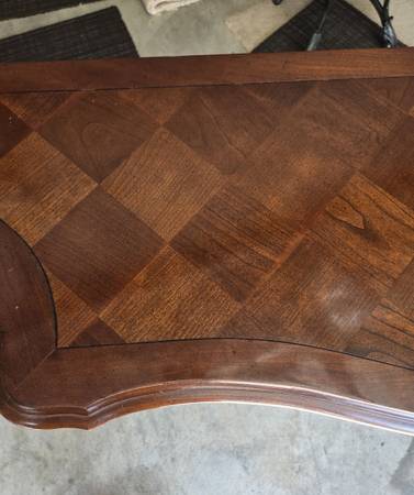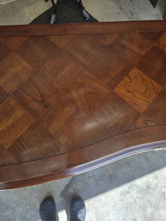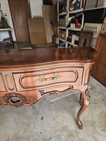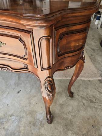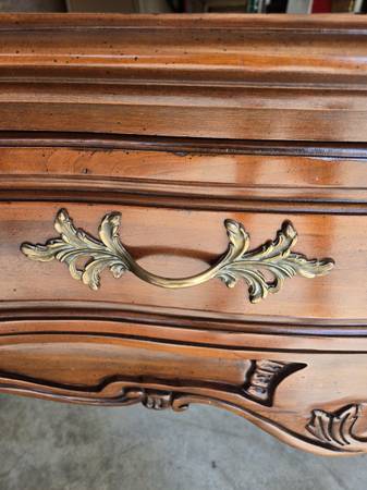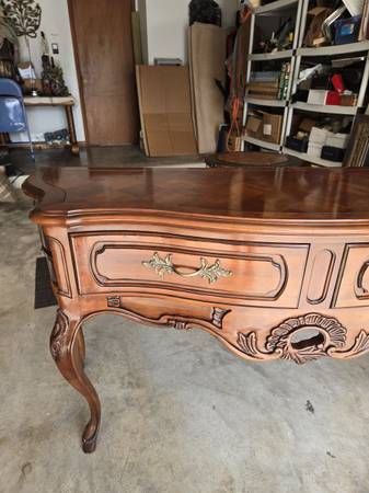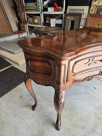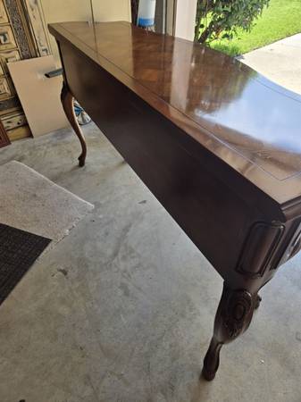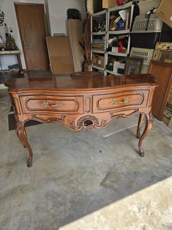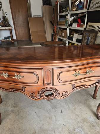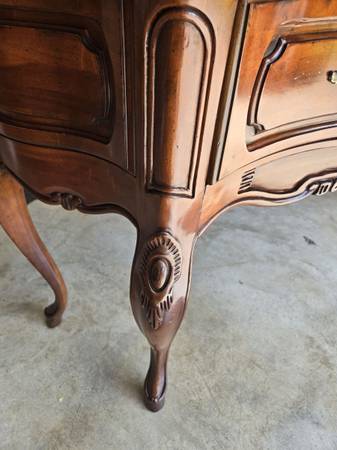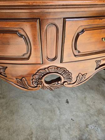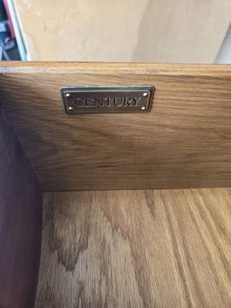 Great looking Vintage sideboard made by Century Furniture Company. All four legs are the same - a lot of wood carving - two drawers & great hardware. Has an amazing wood block pattern on top. The sideboard is in great condition for its age. Some wear as seen in my pictures. It is 34.5 " tall - 62" wide - 18" deep.