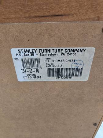Stanley Furniture Company - St Thomas Collection, three drawers chest . Has great hardware. The chest is in excellent condition. It is 32.5" tall - 36" wide - 19 deep local only cash only in person...