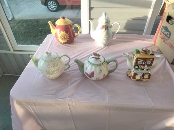 My sale will feature, some furniture, Christmas glassware, nice clothing (men's and women's), like new insta pot, collectables, teapots,motorcycle style jackets, quilt rack, lamps, 1 of 4 Barbie still in original box, lamps, collectable glassware and more.
