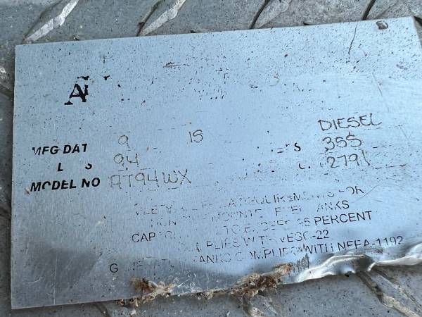 ATTA 94 gallon wedge fuel tank Model AT94WX Sorry for the inconvenience but will not respond to emails from Friday evening to Saturday evening.