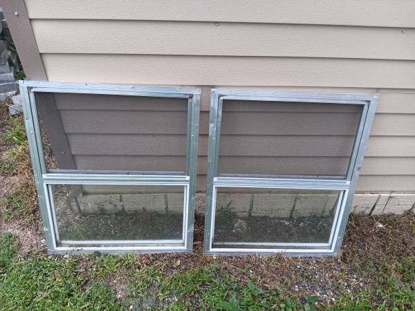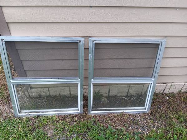 2 shed windows, outside shed Dimensions is 24 in wide by 28 1/2 in tall. Inside window dimensions is 22 1/4 in wide by 27 1/4 in tall.
