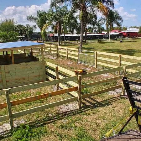 ........Sorry we are no handy man for hire = we will NOT use recycled wood or your old materials etc......its for our safety and credibility we will ONLY us NEW materials and we will only use materials that we purchased from our supplies "if available we already giving you our discounted material rates' we do hand pick your wood Tractor Supply - Lowes - HomeDepot pressure treated. Wood and wire application only !