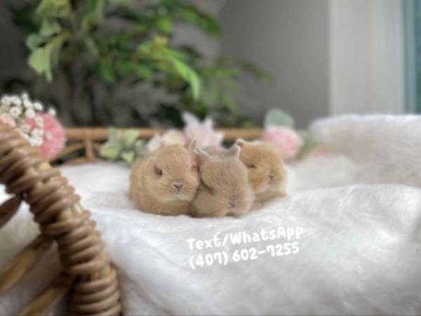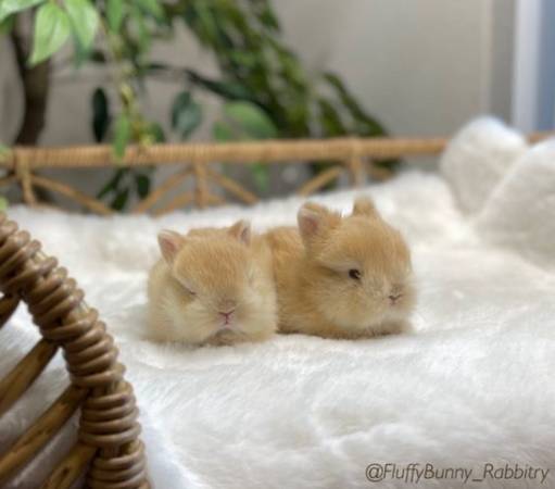 Our Adorable Netherland Dwarf baby bunnies are friendly, social, and good-natured, well-mannered. They make great pets for both adults and children. These are DWARF rabbits, so they will be small when full-grown, weighing around only 1-2.5 lbs. Our bunnies are handled daily so theyre very pampered and loved.