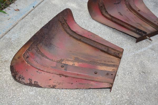 Pair of vintage garden tractor fenders. Make unknown. They measure roughly 23" wide x 18" tall. The bottom mounting tab measures 11.5" in length. Asking $75 for the pair. Located in Maitland, FL 32751. Email, text or call show contact info